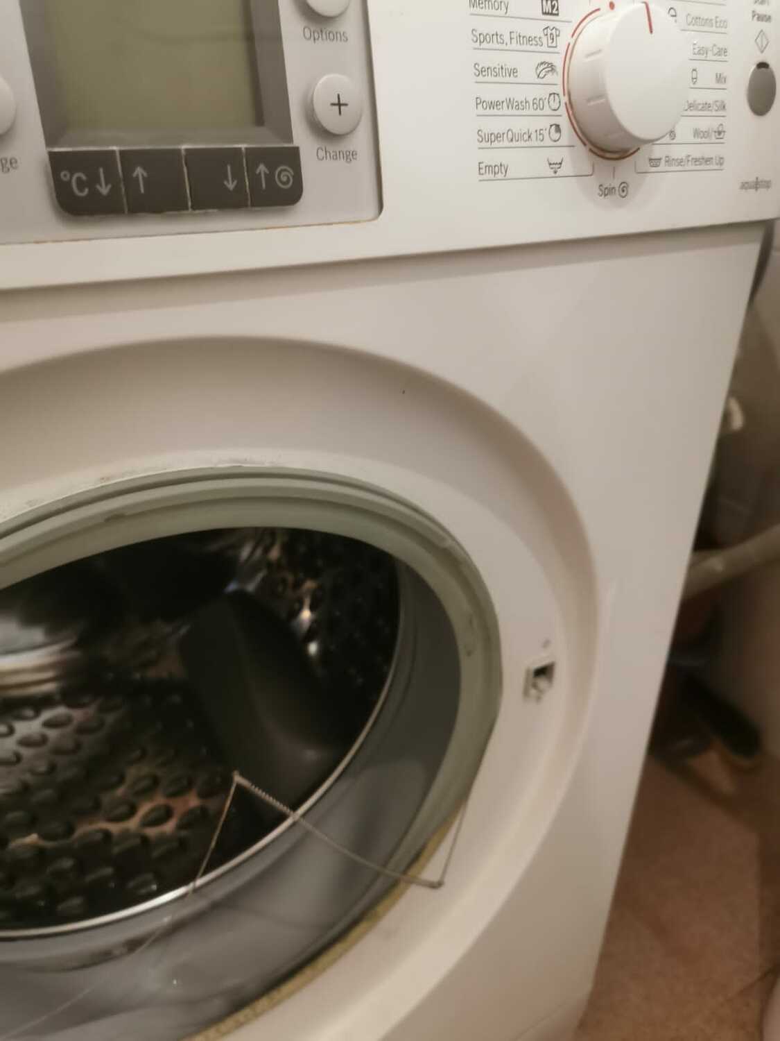 26.05.2022 нашим мастером был выполнен ремонт стиральной машины в ЦАО Москвы. К нам обратилась клиентка с проблемой у стиральной машинки не плотно закрывается люк. Машинка была продиагностирована полностью (всех узлов и агрегатов).В процессе диагностики была выявлено что машинка была перегружена и в результате слетел хомут манжеты и растянулся. Манжета слетела тоже.